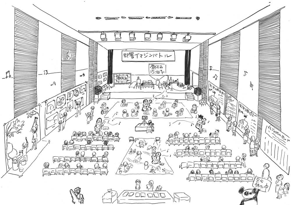 フリータイムは下図のようにフロアでお絵描きしたり、楽器を鳴らしたり、歌を歌ったり!